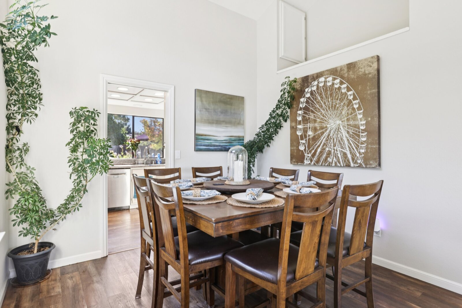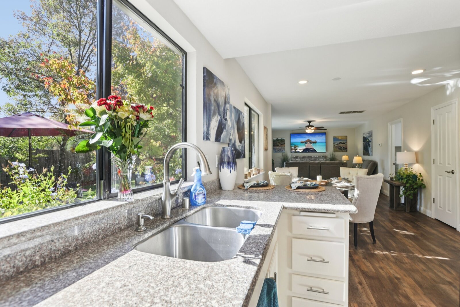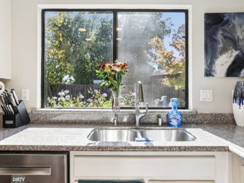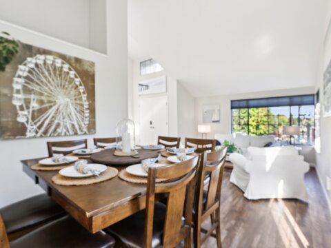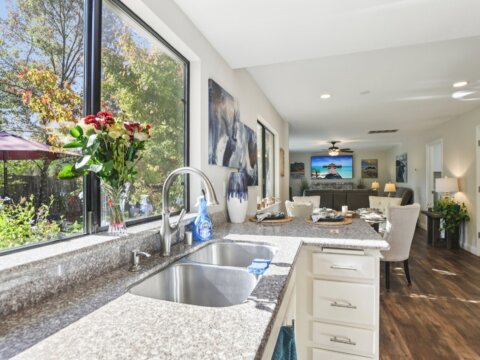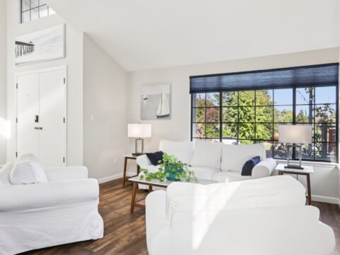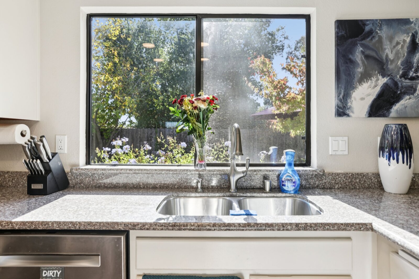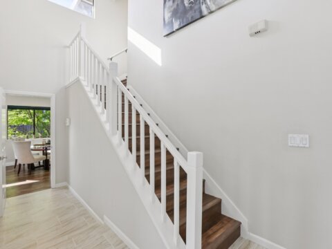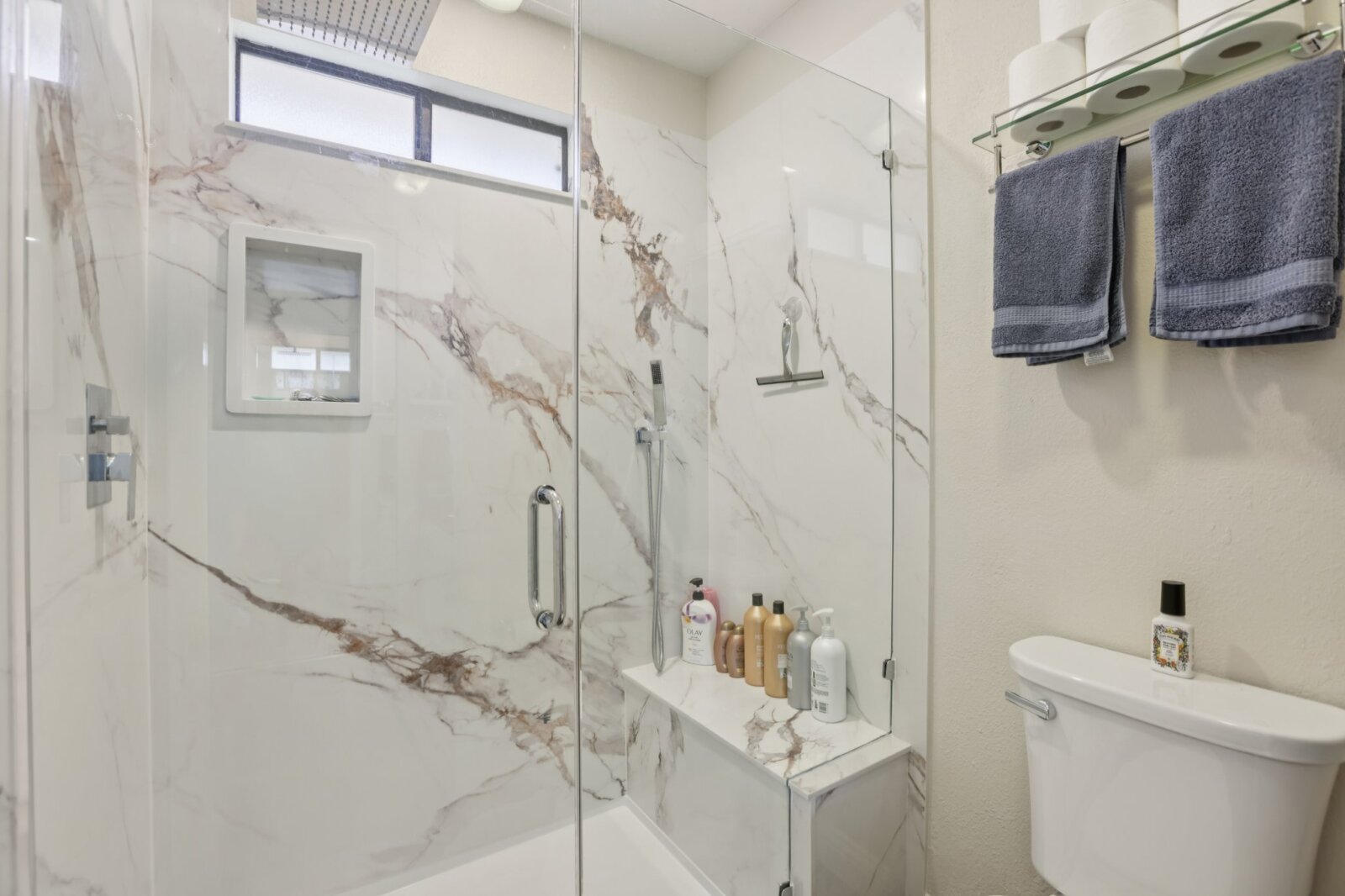 Tasteful updates throughout with newly remodeled bathrooms, LVP waterproof flooring, tiled entry, recessed lighting throughout, new paint, new hot water heater and much more! Nice kitchen with granite countertops and stainless steel appliances including a 5 burner gas range.With vaulted ceilings, large windows, custom shades and a functional layout that maximizes every space.