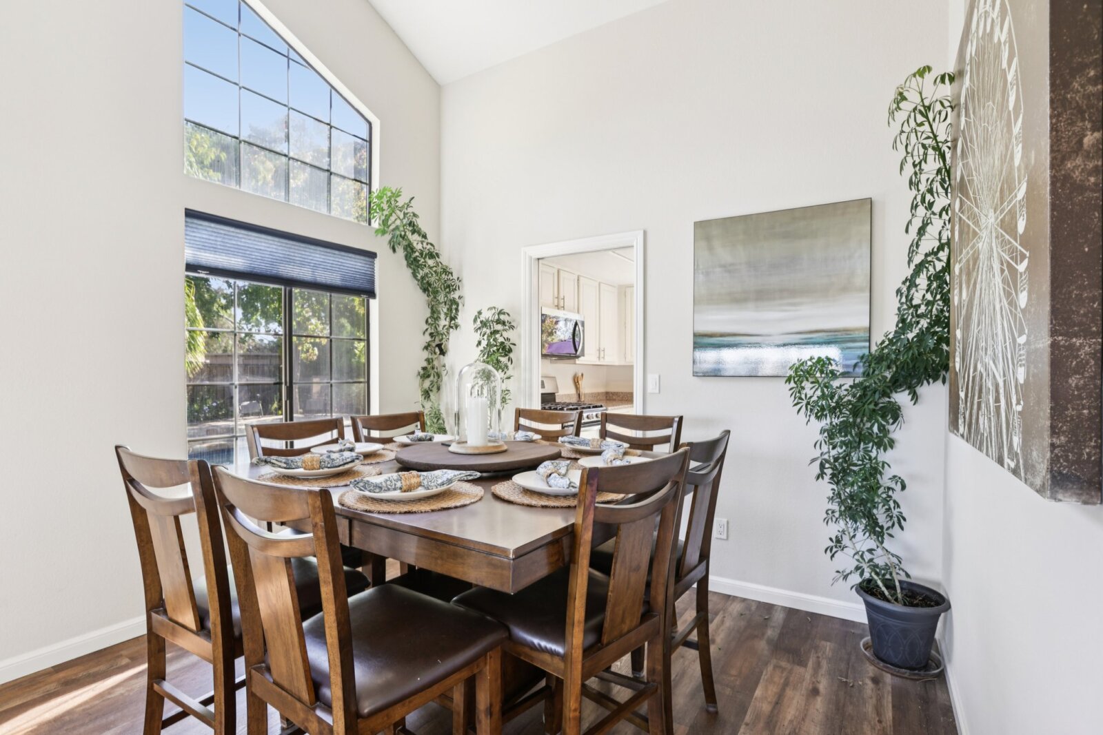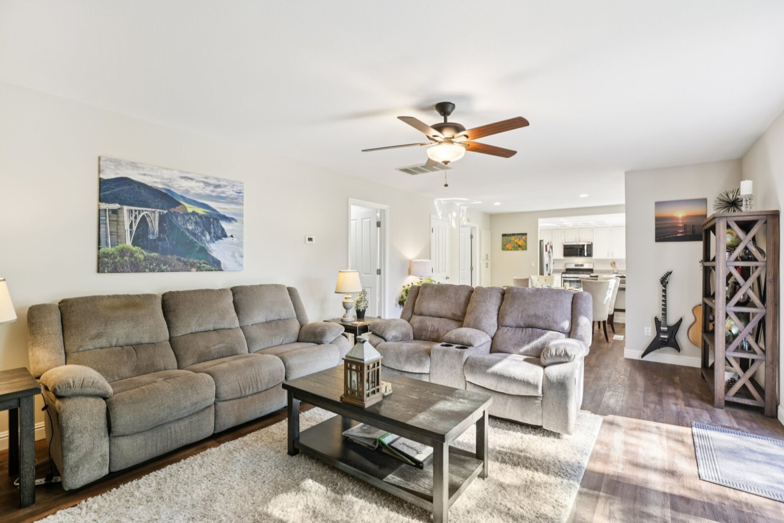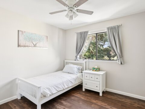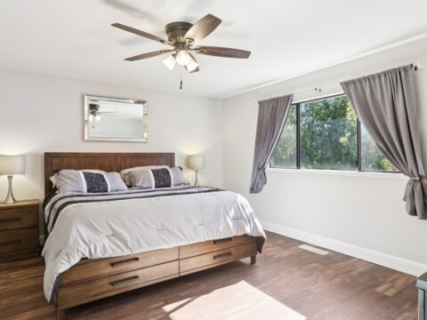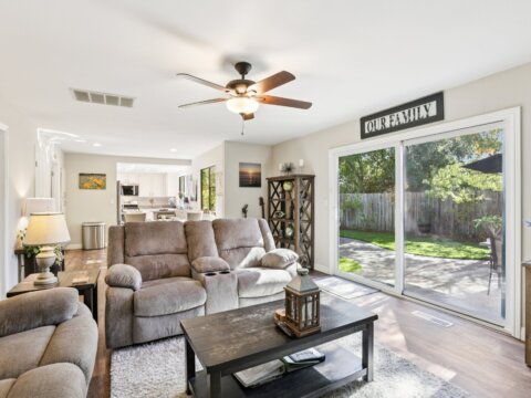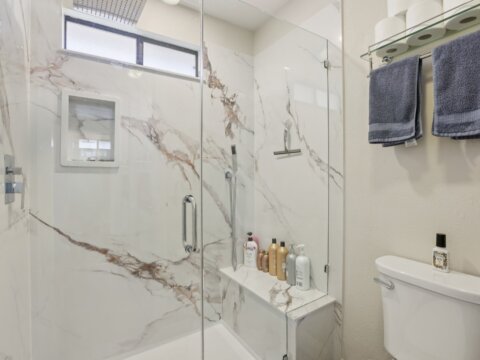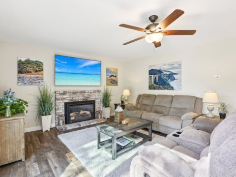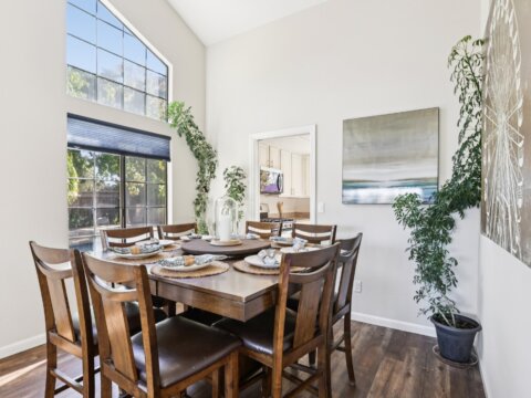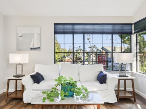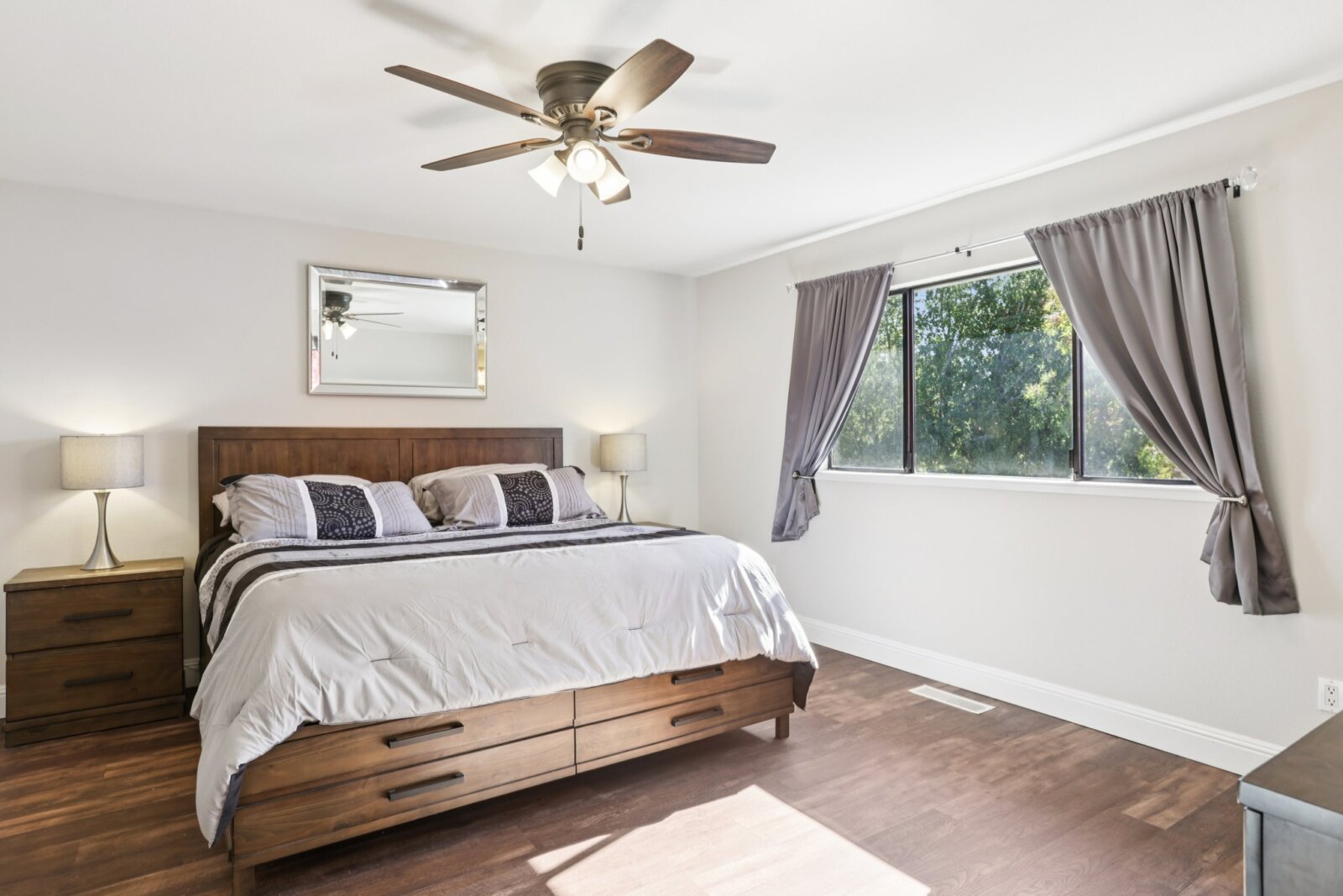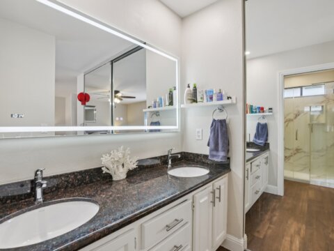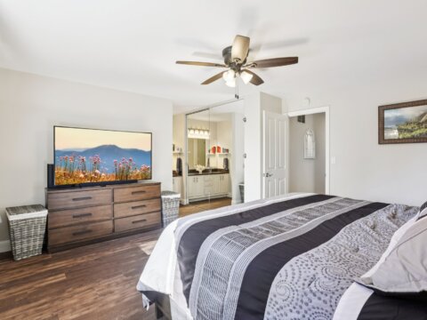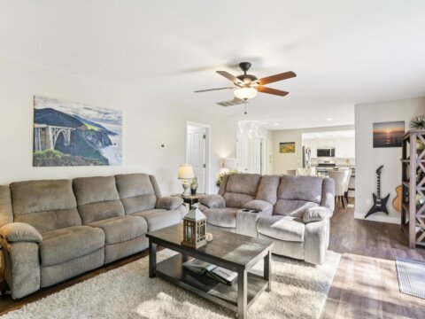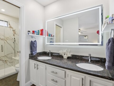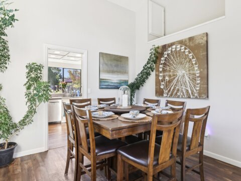 Tasteful updates throughout with newly remodeled bathrooms, LVP waterproof flooring, tiled entry, recessed lighting throughout, new paint, new hot water heater and much more! Nice kitchen with granite countertops and stainless steel appliances including a 5 burner gas range.With vaulted ceilings, large windows, custom shades and a functional layout that maximizes every space.