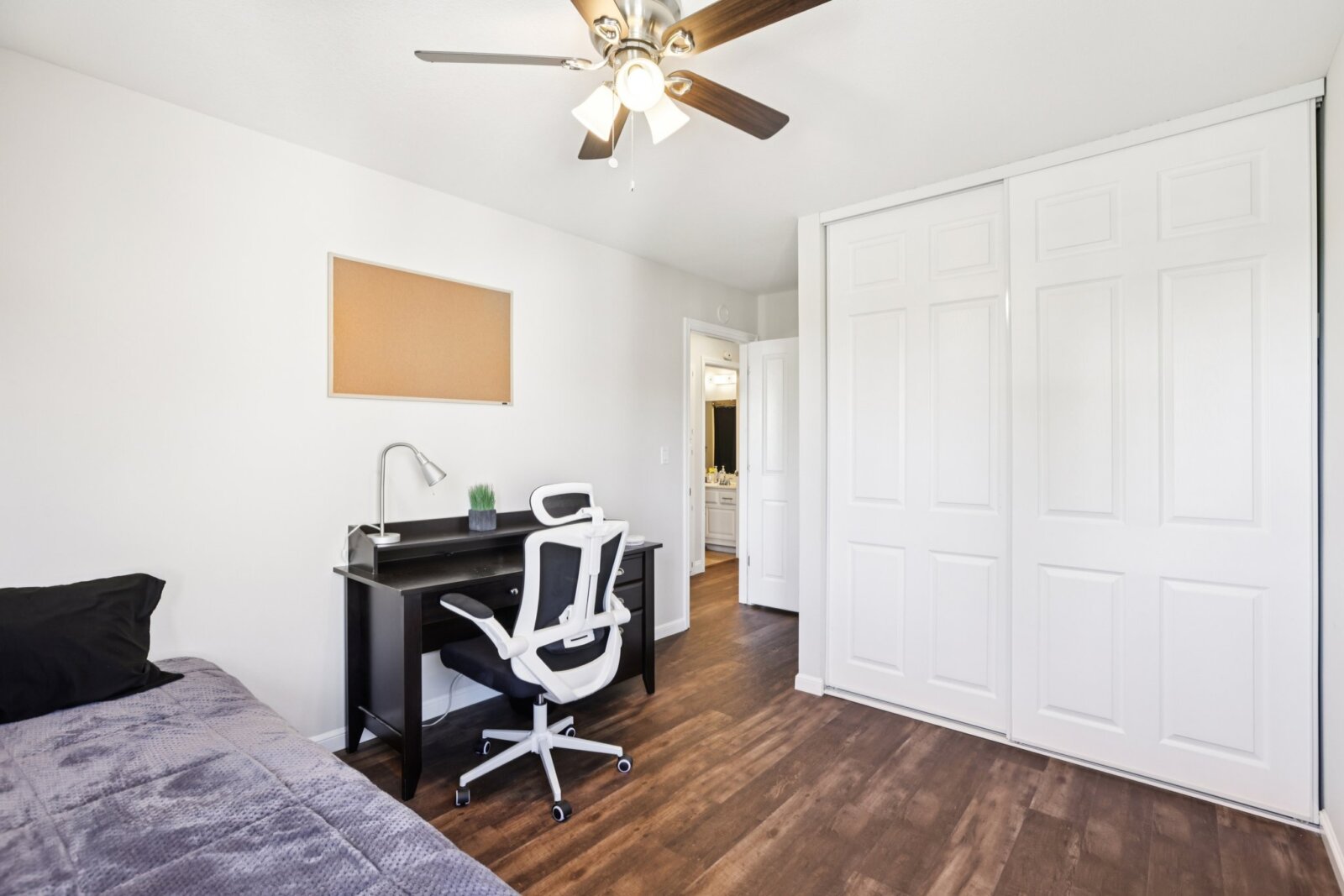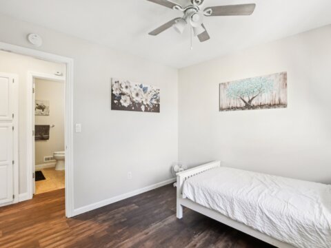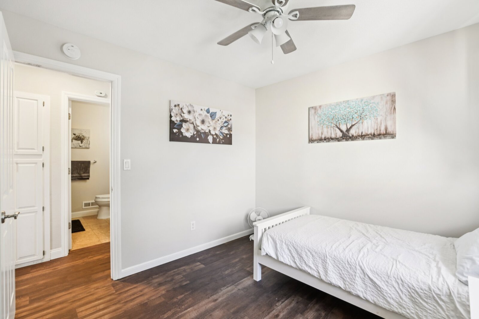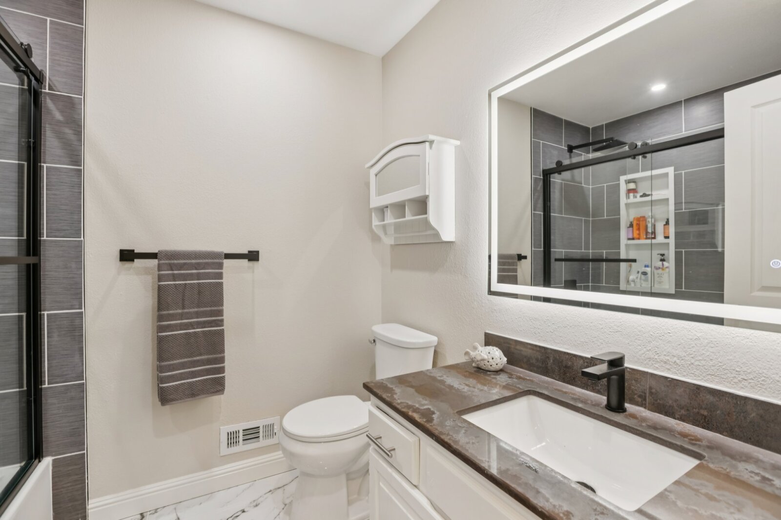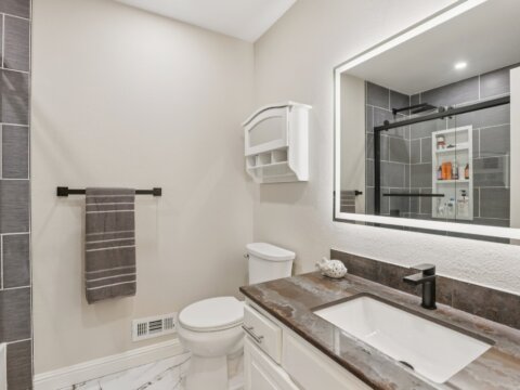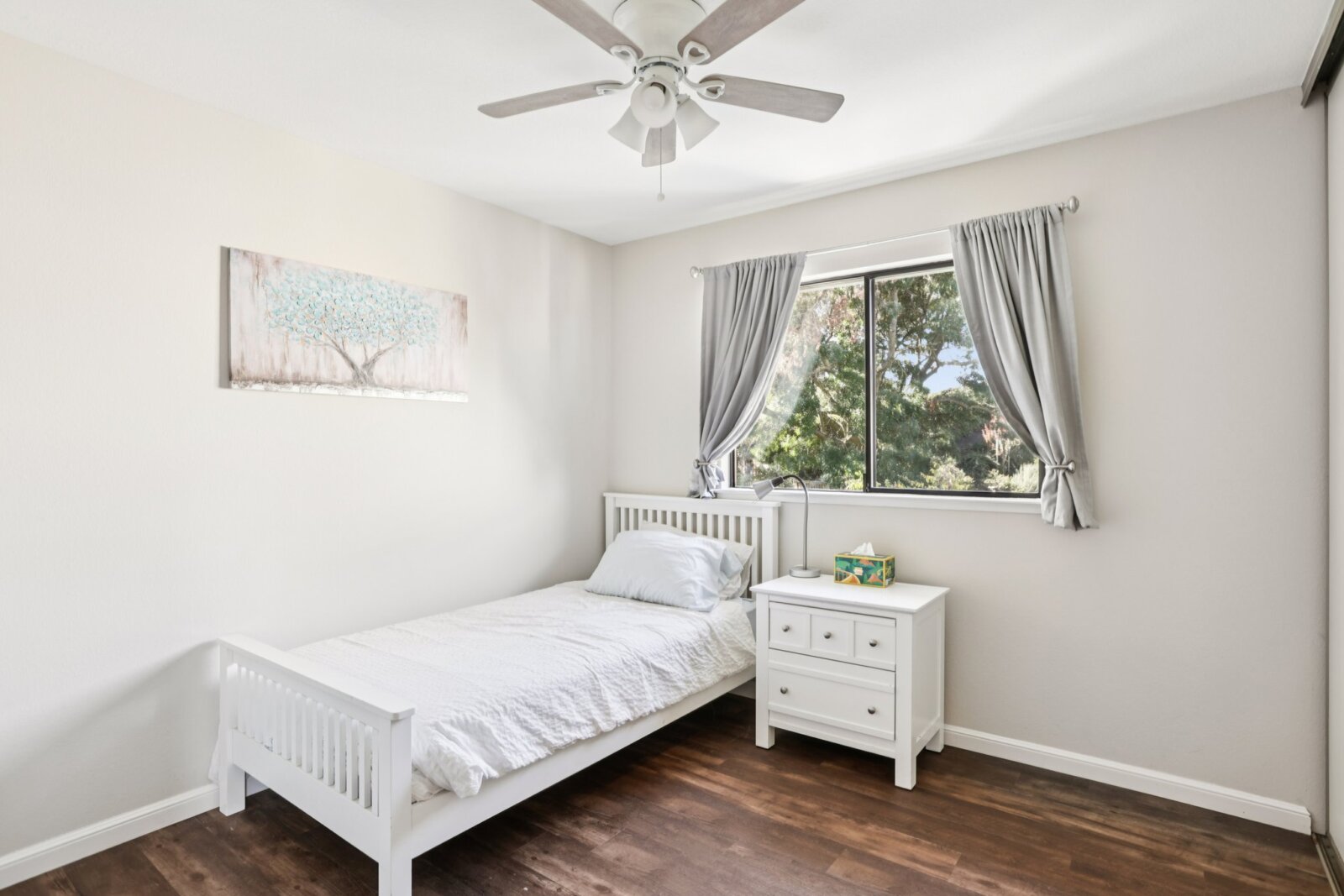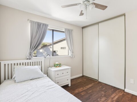 Tasteful updates throughout with newly remodeled bathrooms, LVP waterproof flooring, tiled entry, recessed lighting throughout, new paint, new hot water heater and much more! Nice kitchen with granite countertops and stainless steel appliances including a 5 burner gas range.With vaulted ceilings, large windows, custom shades and a functional layout that maximizes every space.