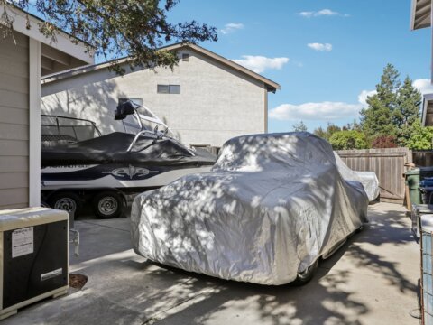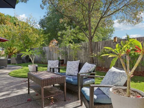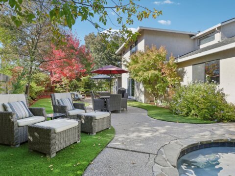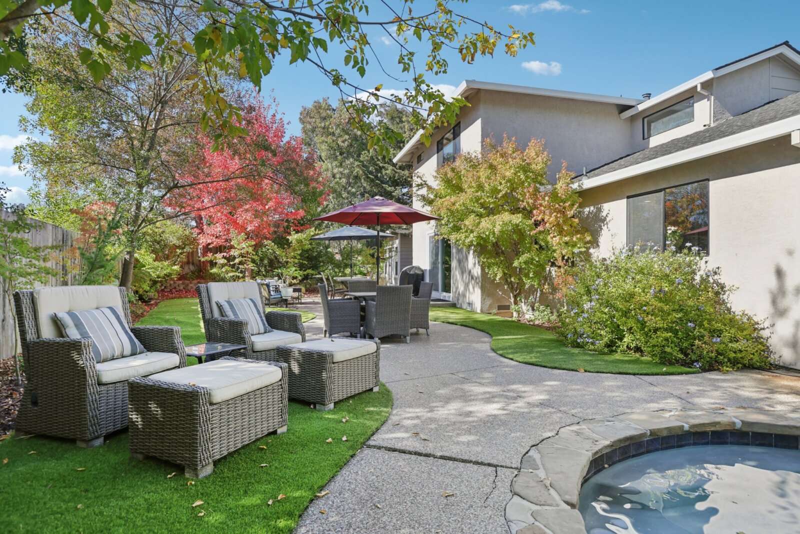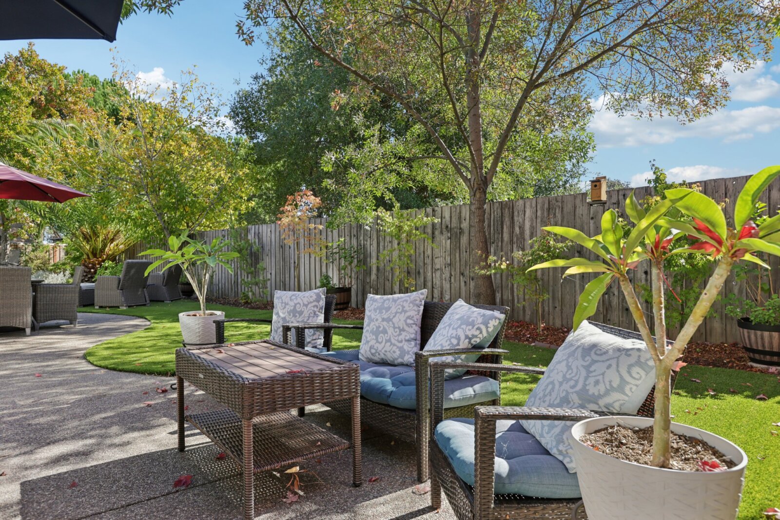 Fully fenced, flat and usable .39 acre lot with an abundance of mature trees, exotic plants and plenty of flowers on automatic drip system featuring artificial turf for low water and maintenance.